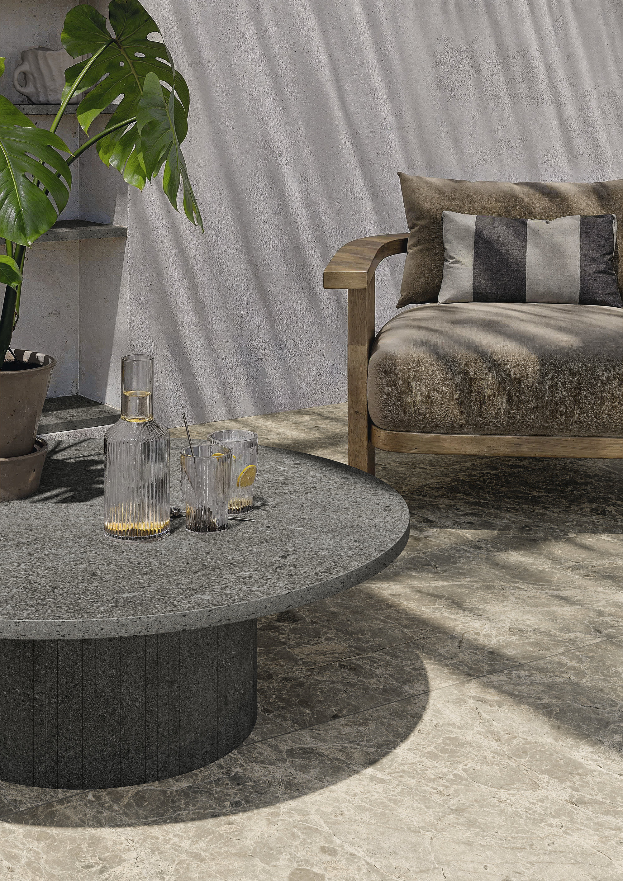 Un effetto che ricorda le lastre di pietra naturale.