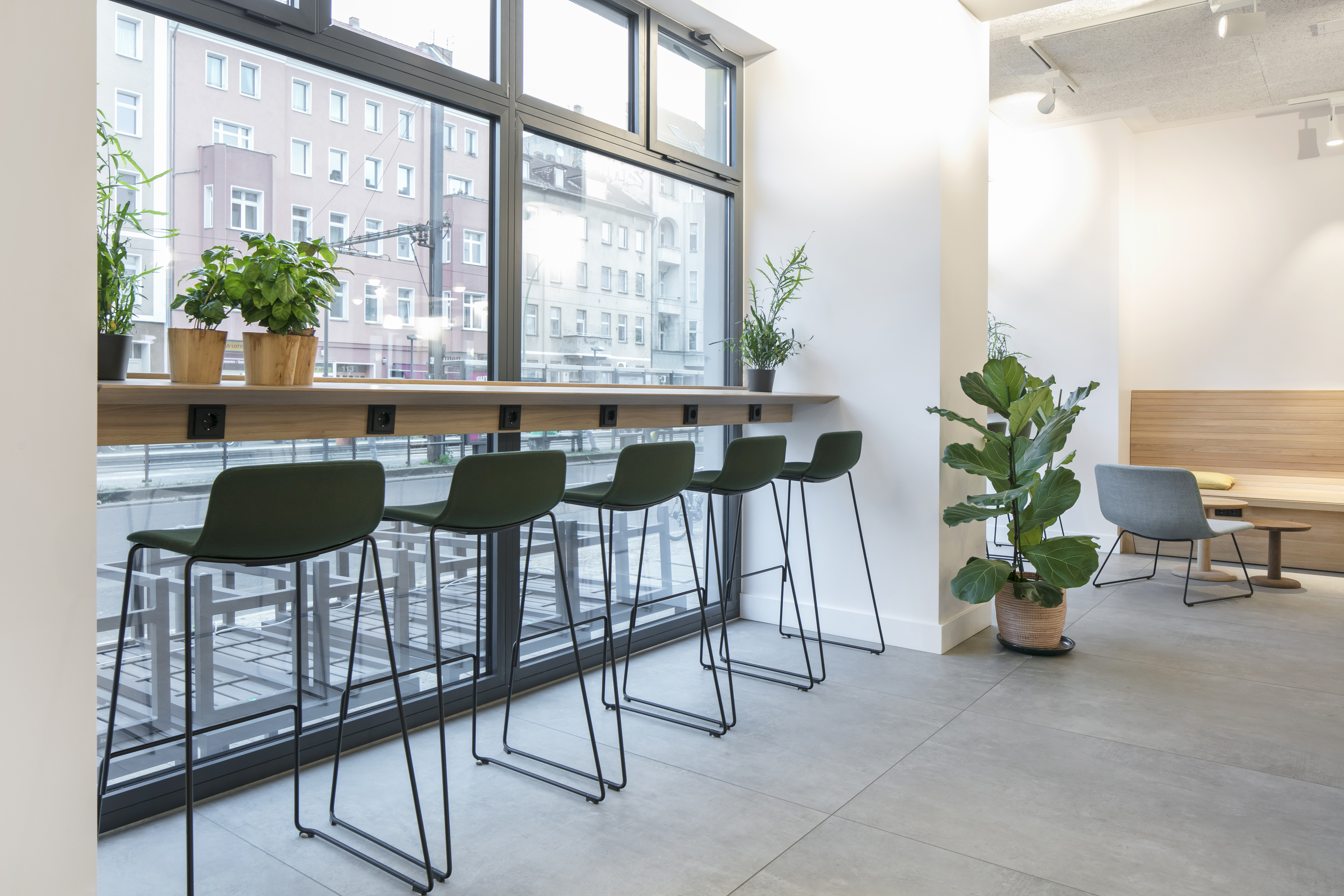 è perfettamente espressa nel progetto architettonico disegnato dallo studio Londra Freehaus Design. Agenzia creativa pluripremiata, fondata a Londra nel 2012, ha fatto della progettazione sostenibile la sua bandiera. Per Hermann's ha creato un progetto di interior design accattivante che predilige colori tenui e sobri, ben lontano dallo stile rustico di altri locali simili nel centro di Berlino. Una scelta che giova molto al fascino di uno spazio concepito come co-working.