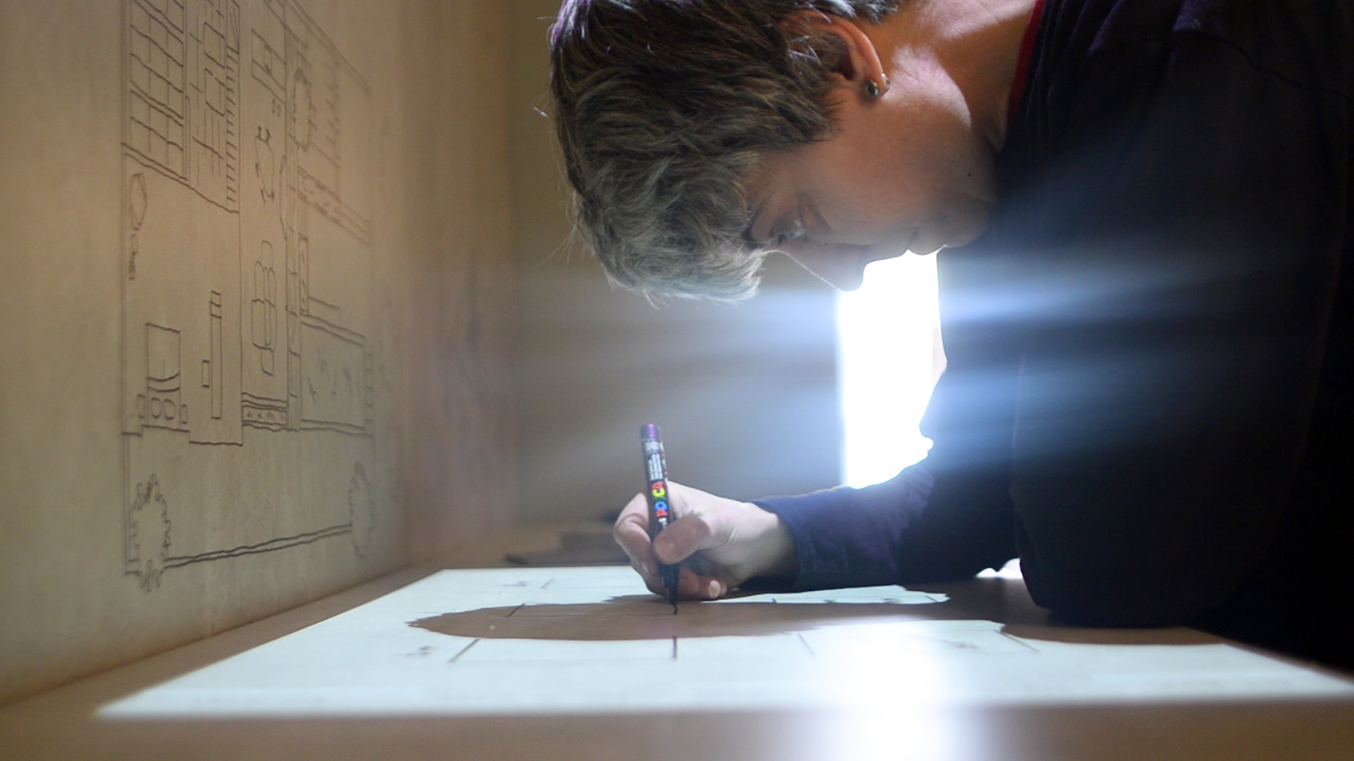 per completare l’esperienza immersiva e fotorealistica della realtà virtuale applicata alle superfici ceramiche: gli stessi elementi distintivi dell’Urban House vengono riproposti sotto forma di disegno e animati da una video proiezione che accende e fa vivere le stanze della casa, a seconda dello spessore materico scelto.