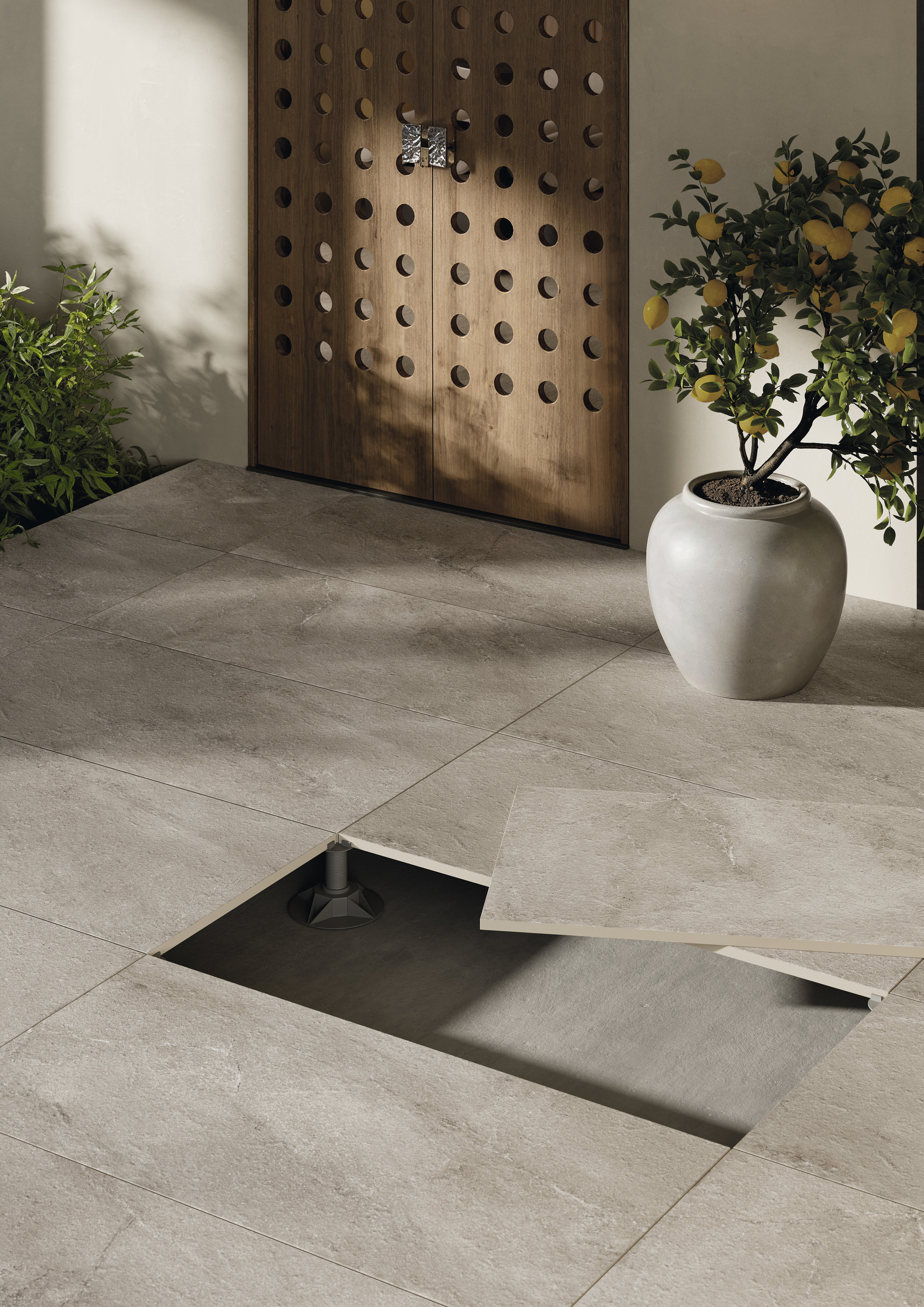 Sotto la superficie in grès porcellanato c'è una piccola intercapedine accessibile, ideale per la posa di impianti e tubature.